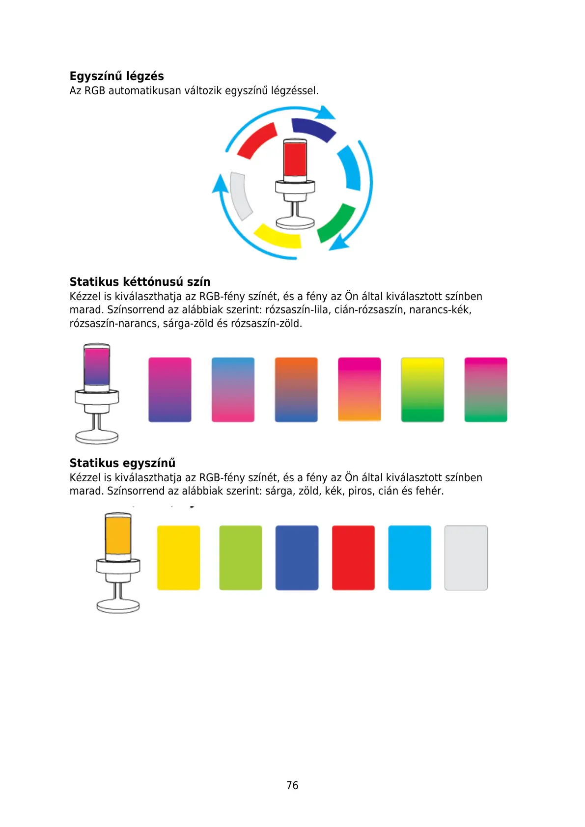 marad. Színsorrend az alábbiak szerint: sárga, zöld, kék, piros, cián és fehér.