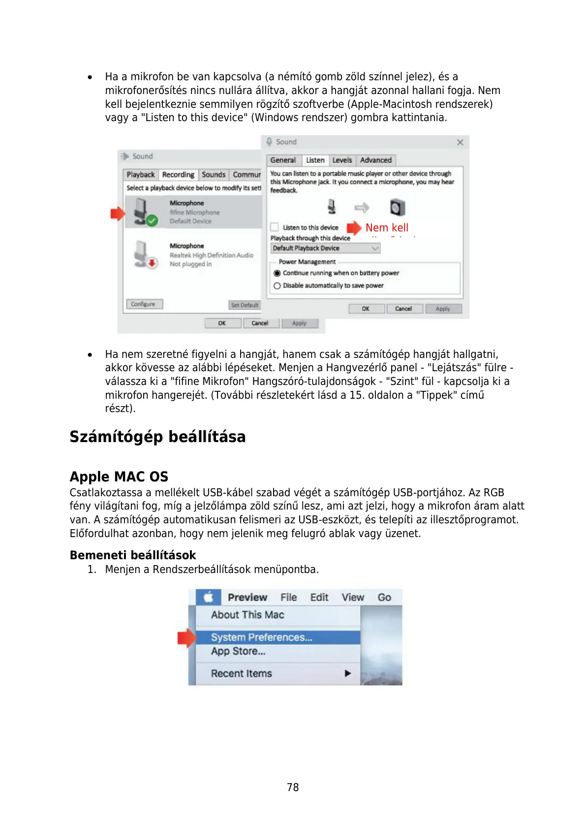 vagy a "Listen to this device" (Windows rendszer) gombra kattintania.