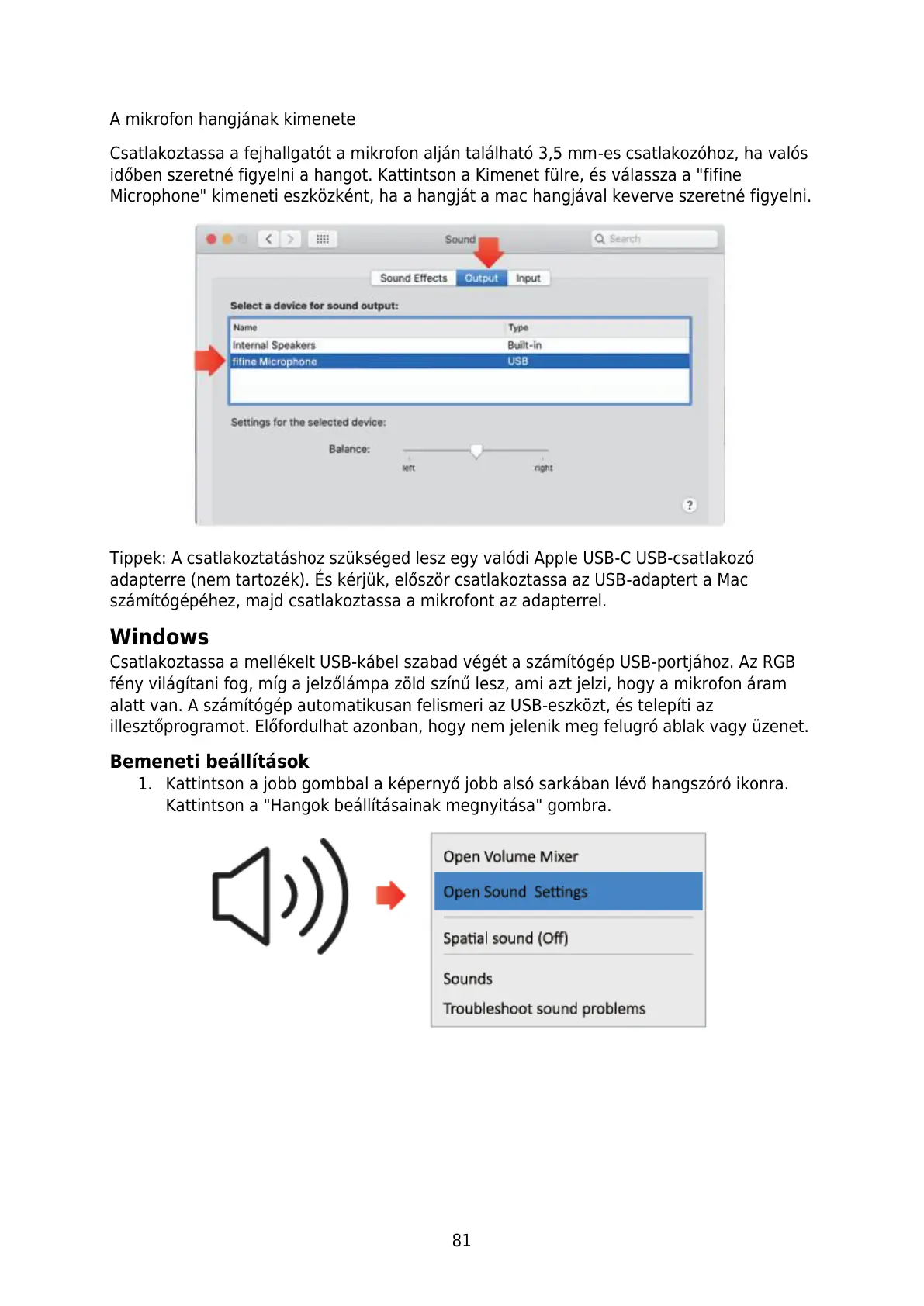 időben szeretné figyelni a hangot. Kattintson a Kimenet fülre, és válassza a "fifine