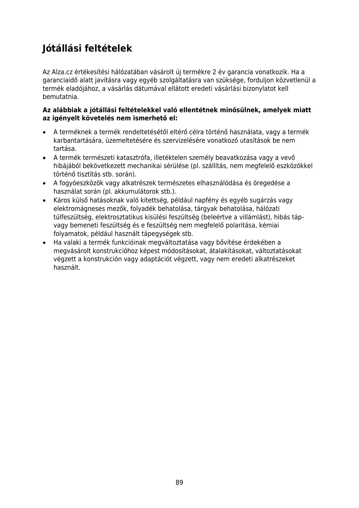 Az alábbiak a jótállási feltételekkel való ellentétnek minősülnek, amelyek miatt