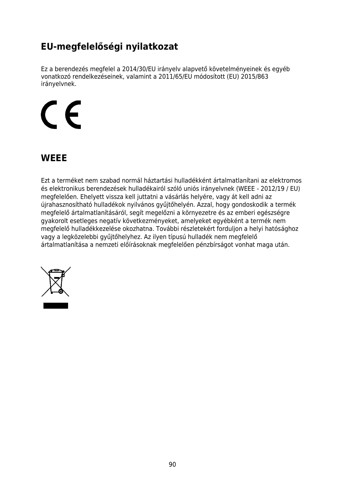 Ez a berendezés megfelel a 2014/30/EU irányelv alapvető követelményeinek és egyéb