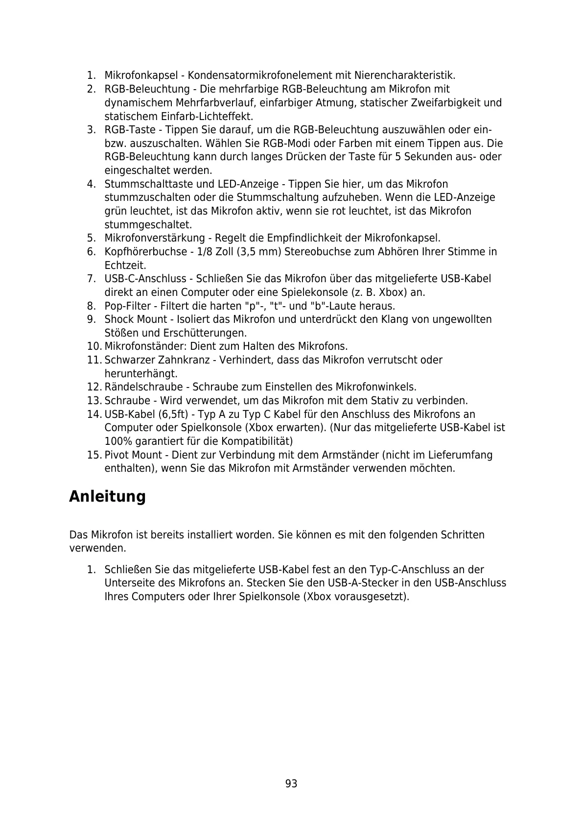 14. USB-Kabel (6,5ft) - Typ A zu Typ C Kabel für den Anschluss des Mikrofons an