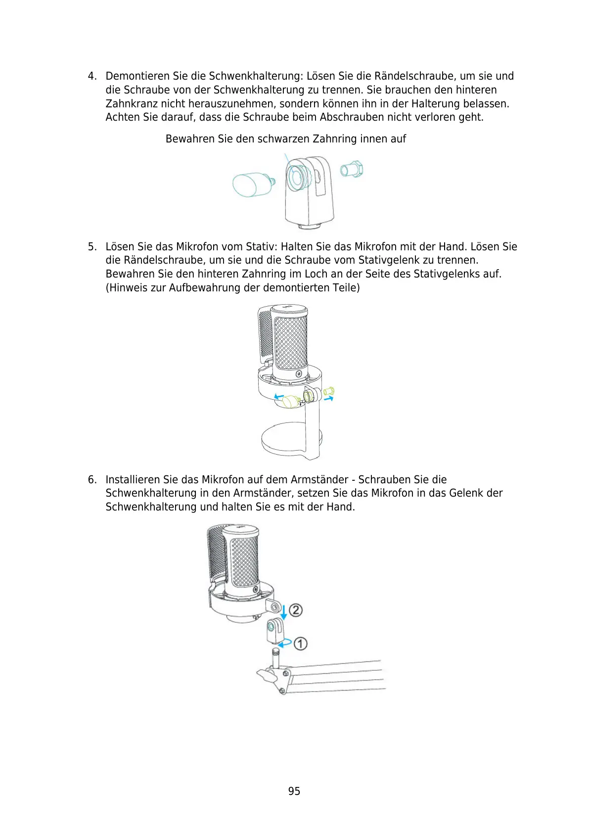 5. Lösen Sie das Mikrofon vom Stativ: Halten Sie das Mikrofon mit der Hand. Lösen Sie