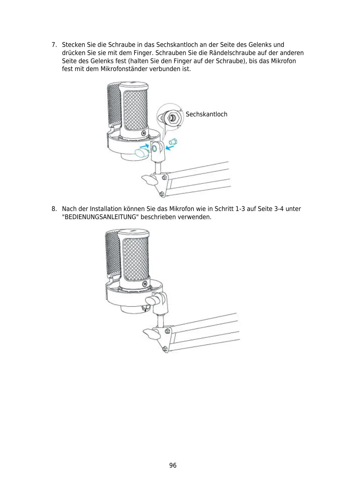 8. Nach der Installation können Sie das Mikrofon wie in Schritt 1-3 auf Seite 3-4 unter