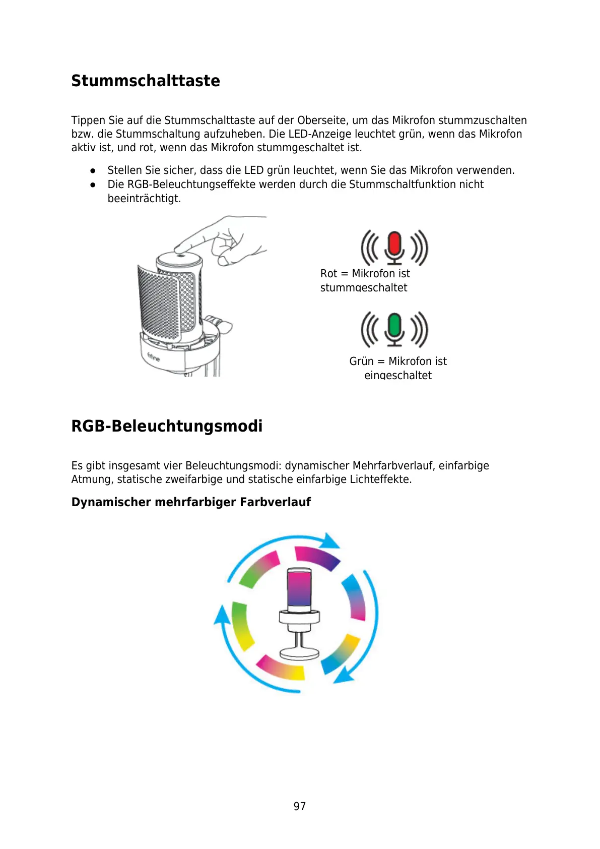● Die RGB-Beleuchtungseffekte werden durch die Stummschaltfunktion nicht