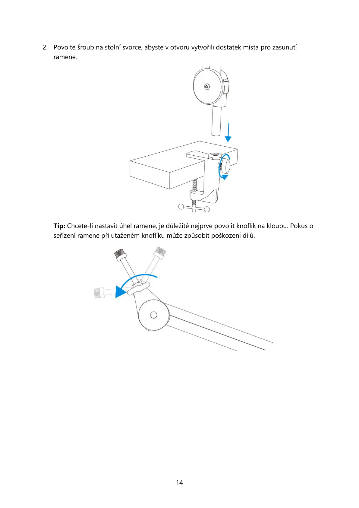 Tip: Chcete-li nastavit úhel ramene, je důlité nejprve povolit knoflík na kloubu. Pokus o