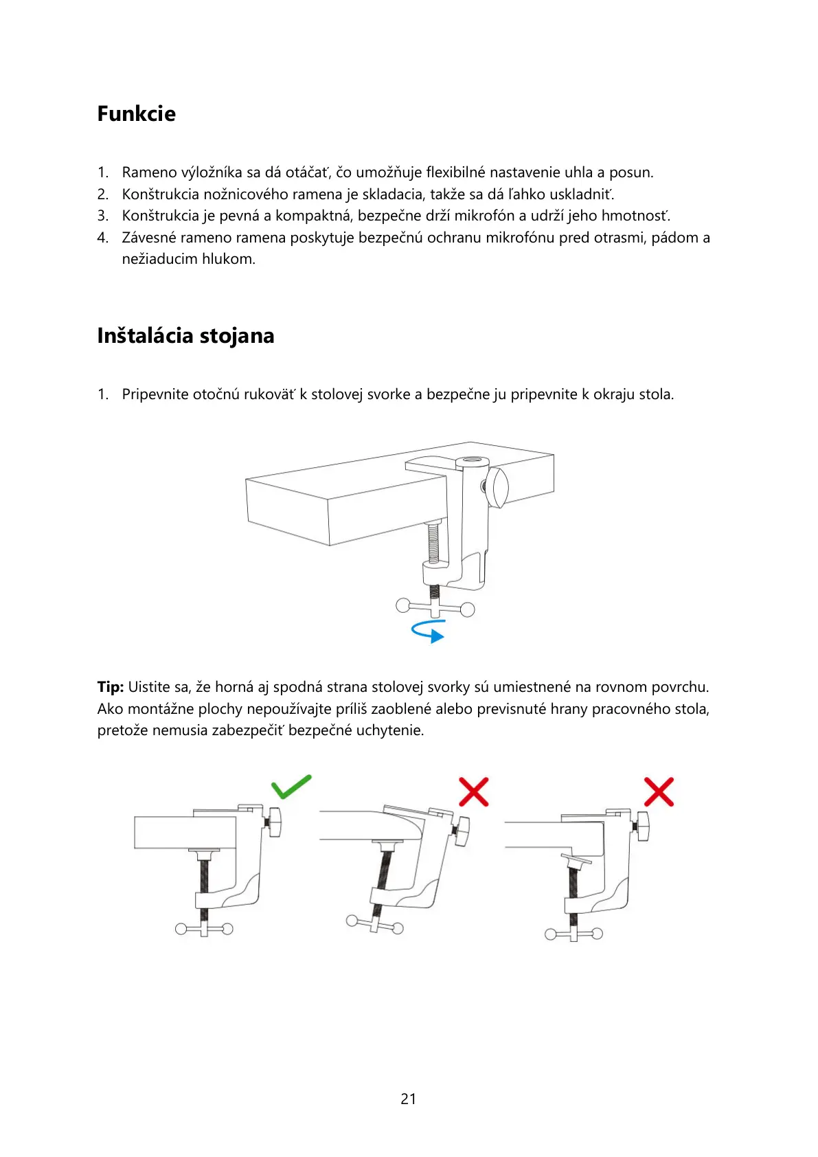 Tip: Uistite sa, že horná aj spodná strana stolovej svorky sú umiestnené na rovnom povrchu.