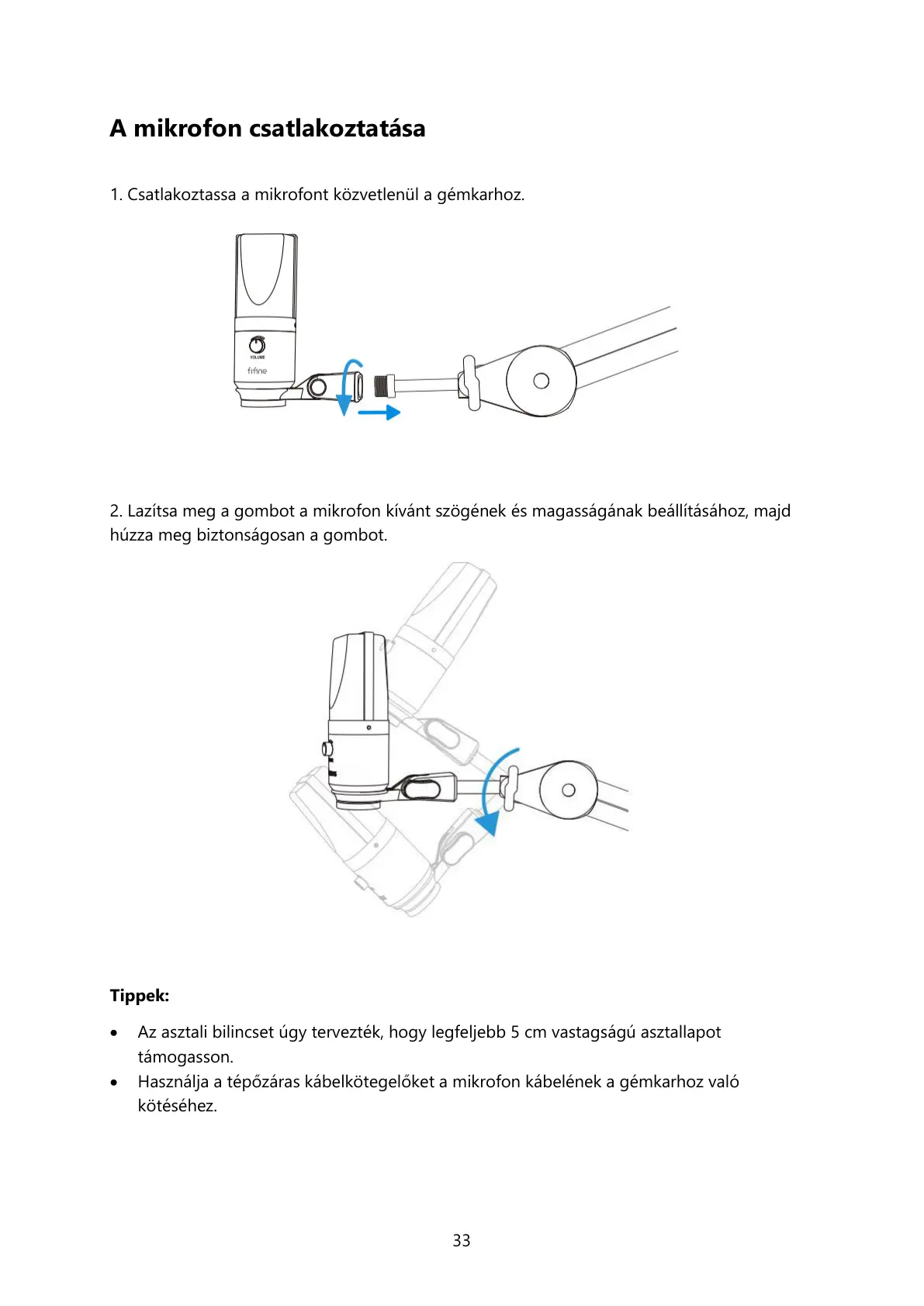 1. Csatlakoztassa a mikrofont közvetlenül a gémkarhoz.