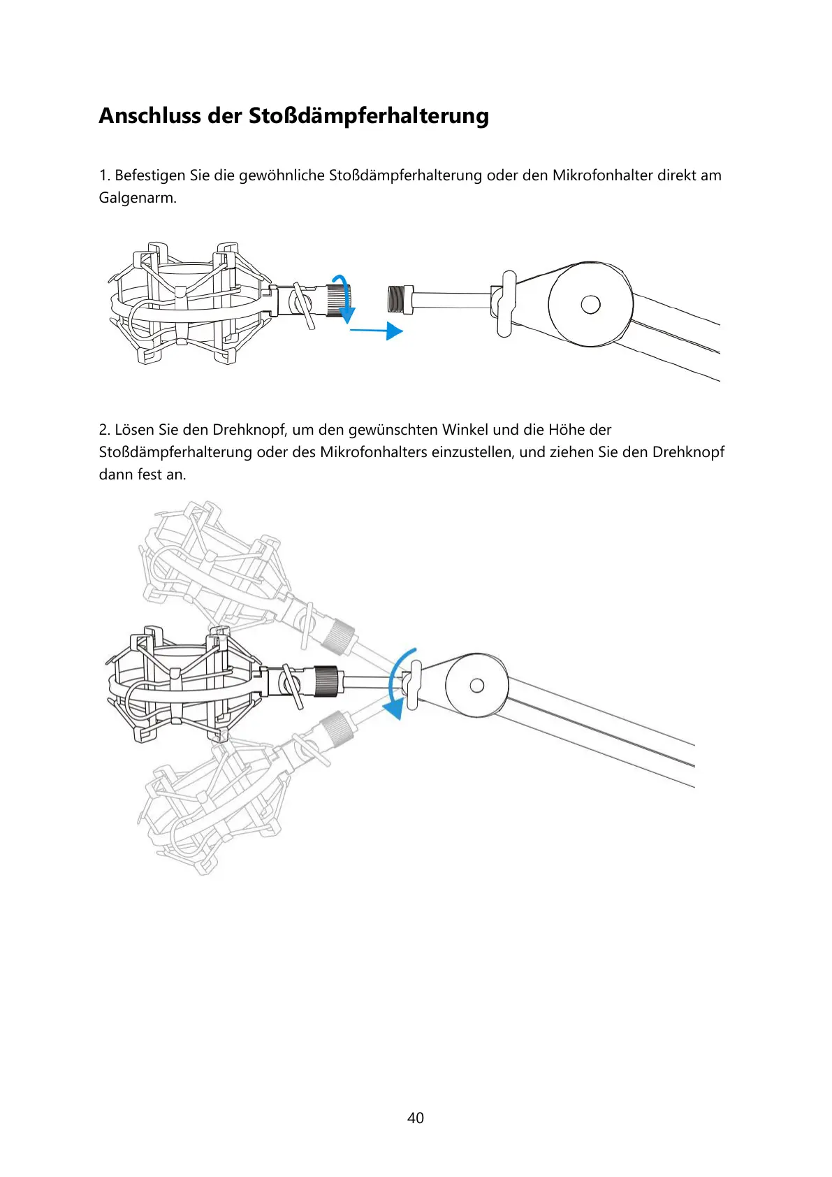 Stoßdämpferhalterung oder des Mikrofonhalters einzustellen, und ziehen Sie den Drehknopf