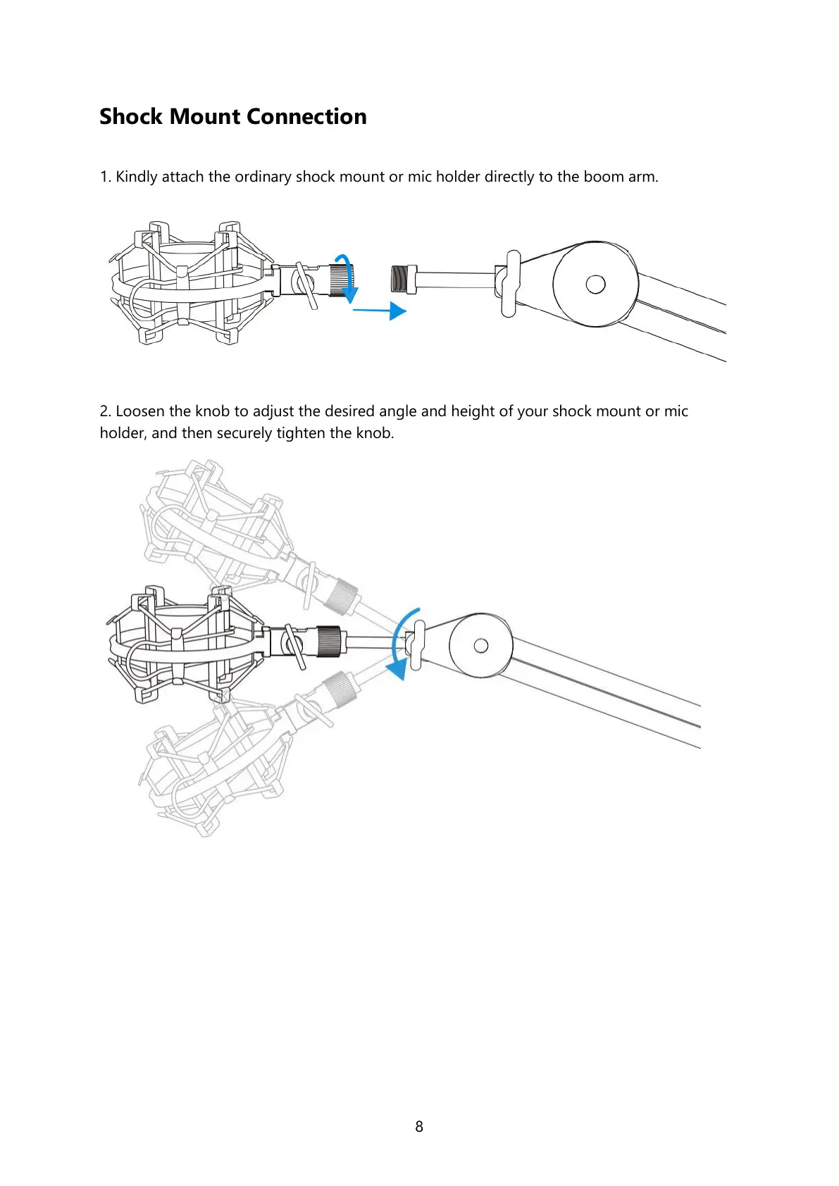 1. Kindly attach the ordinary shock mount or mic holder directly to the boom arm.