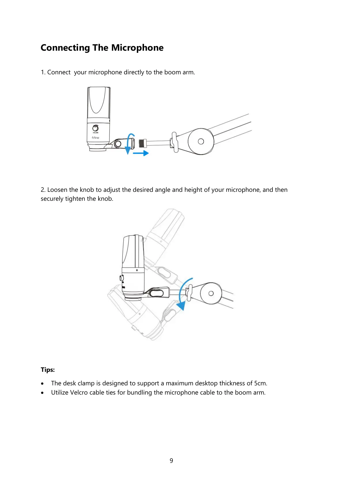 2. Loosen the knob to adjust the desired angle and height of your microphone, and then