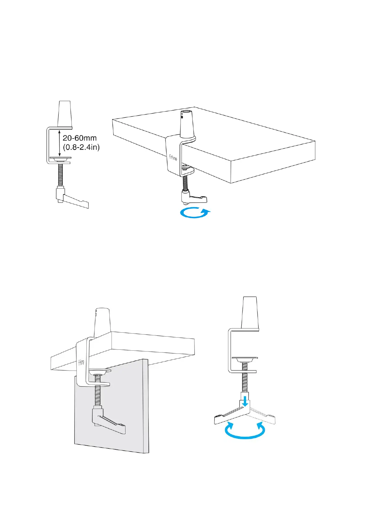 1. Ak chcete nainštalovať svorku na stôl, položte ju na okraj stola, uvoľnite západku