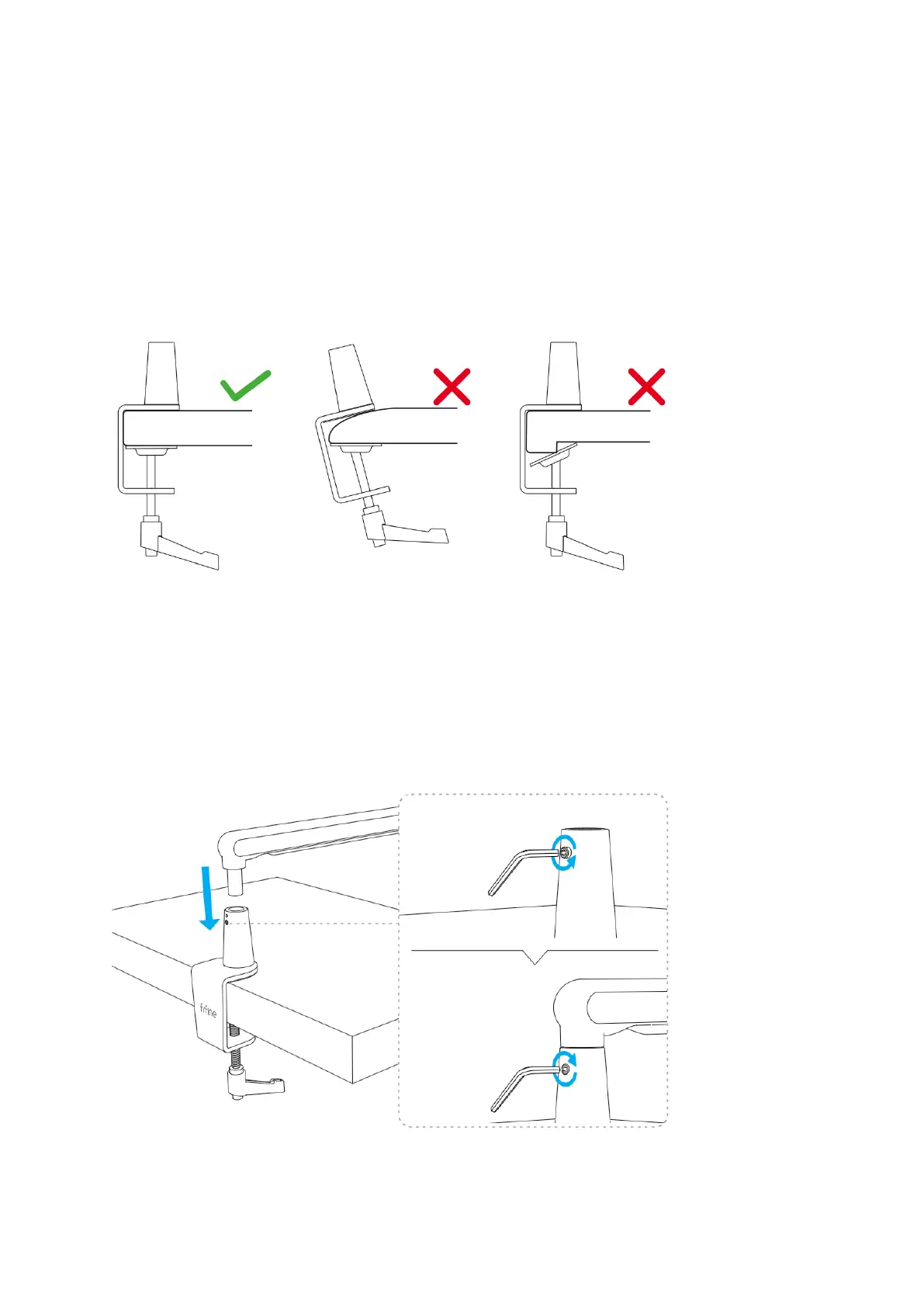 im Uhrzeigersinn fest, um den Auslegerarm und die Tischklemme fest miteinander zu