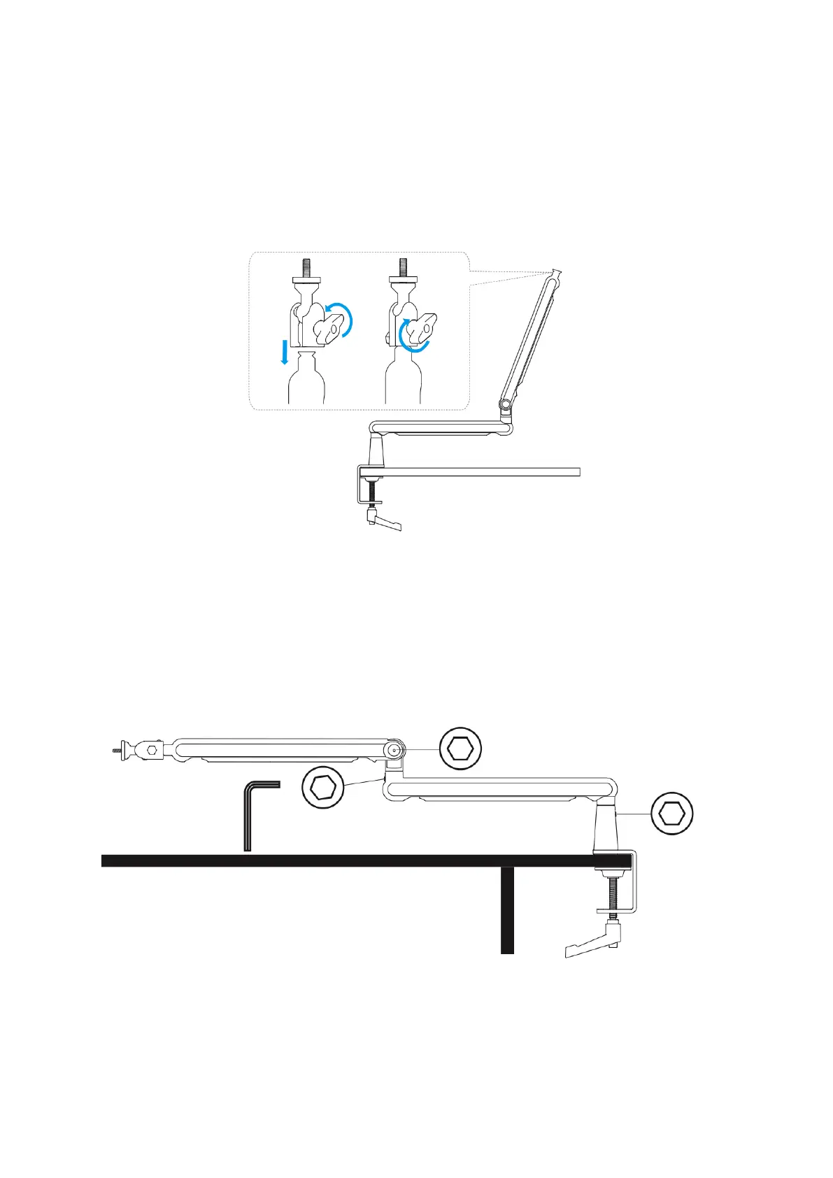 4. To adjust boom arm use an allen wrench, turn the screw counterclockwise to loosen