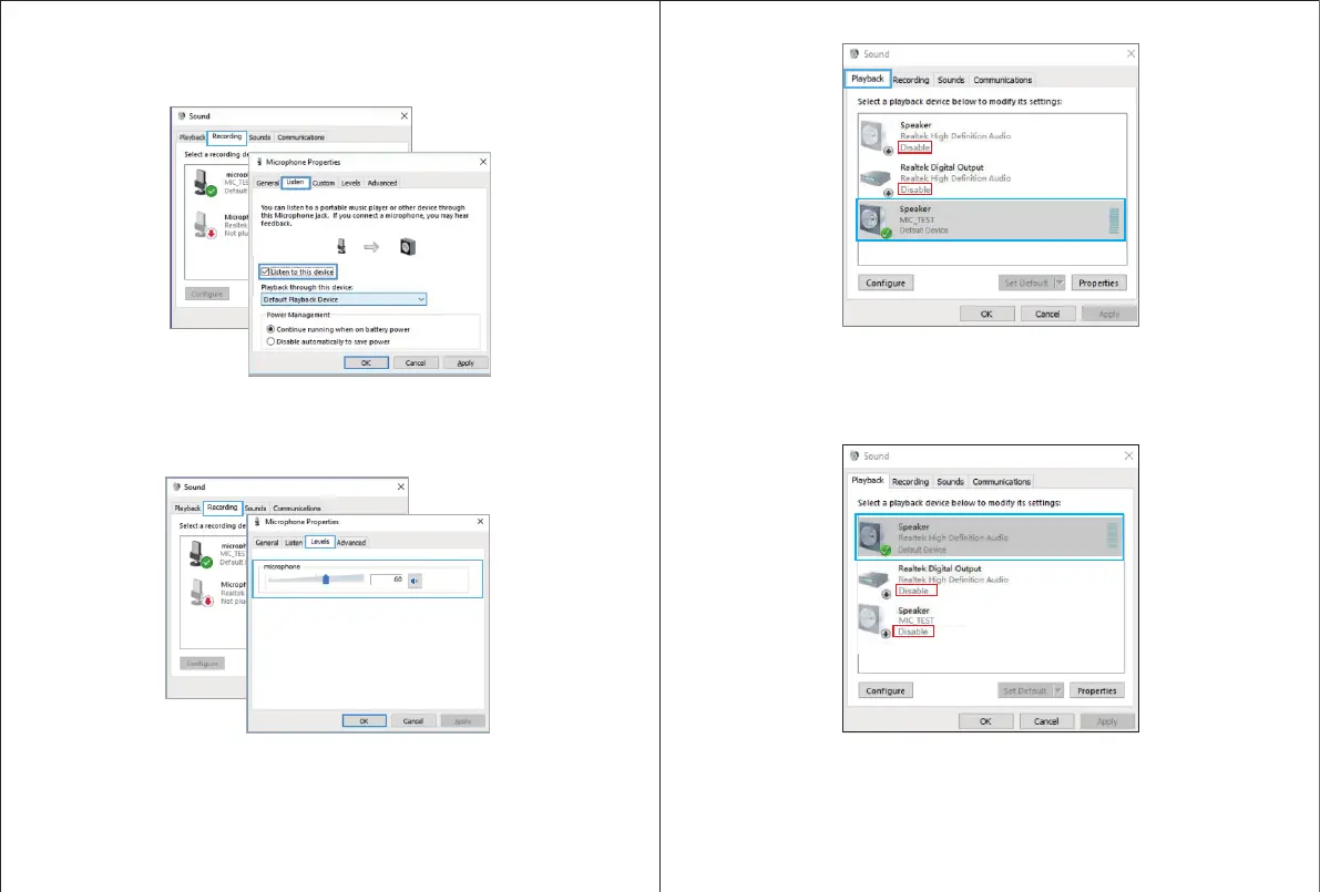 "Deaktivieren". Aktivieren Sie in der Zwischenzeit das "Realtek High Denition Audio".