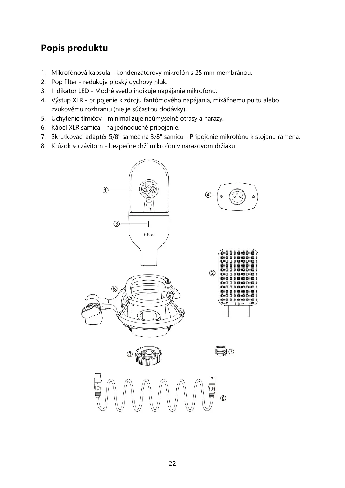 8. Krúžok so závitom - bezpečne drží mikrofón v nárazovom držiaku.
