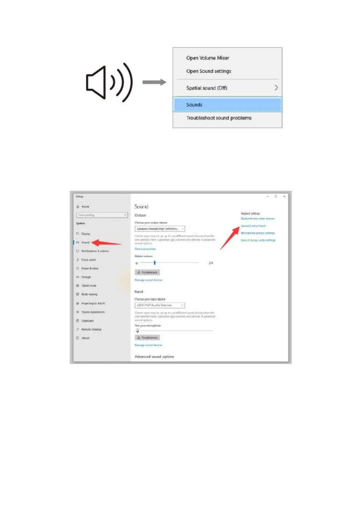 2. Klikněte na ovládací panel Zvuk.