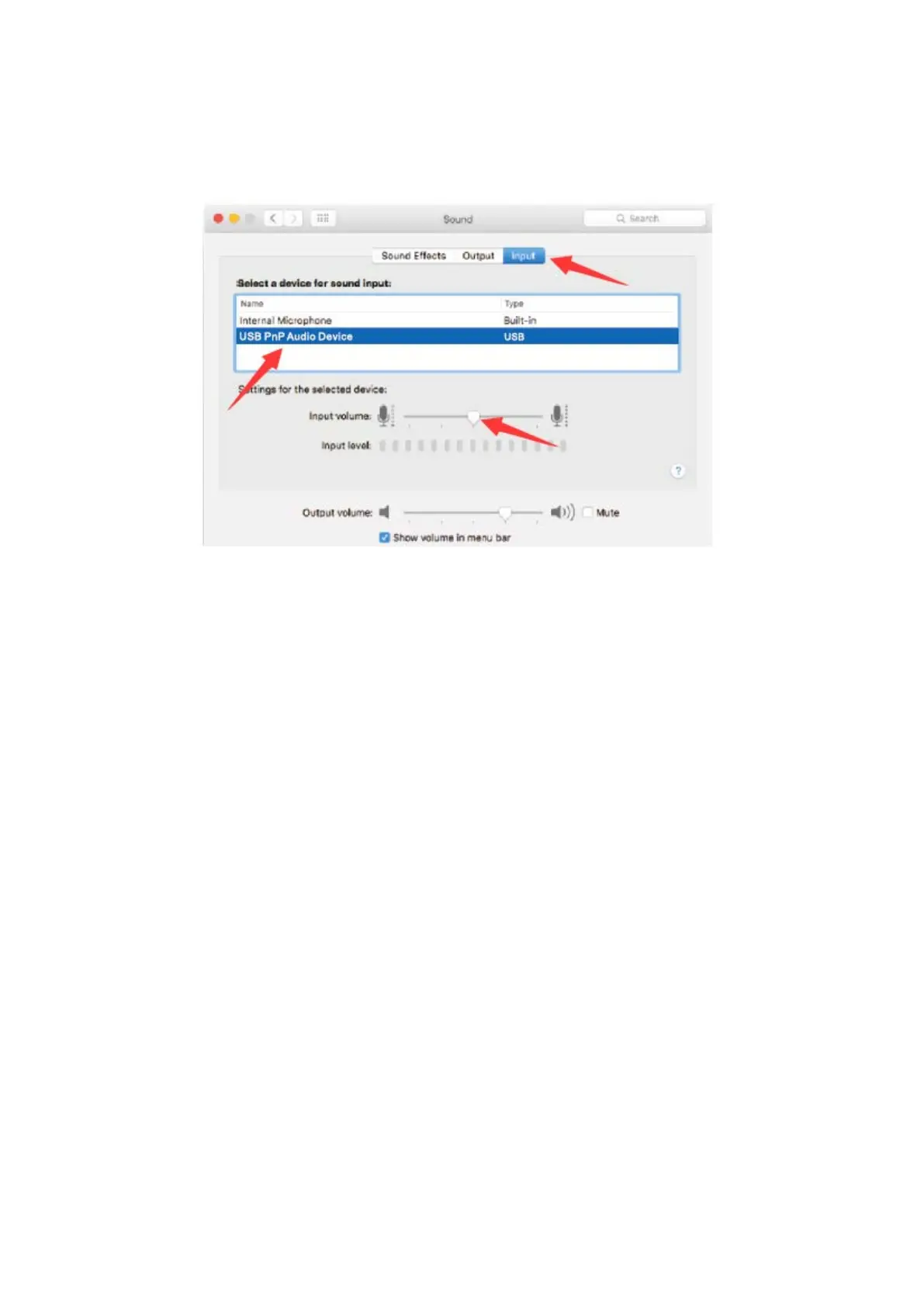 4. Kattintson a bemeneti fülre, és győződjön meg róla, hogy az "USB PnP Audio Device"