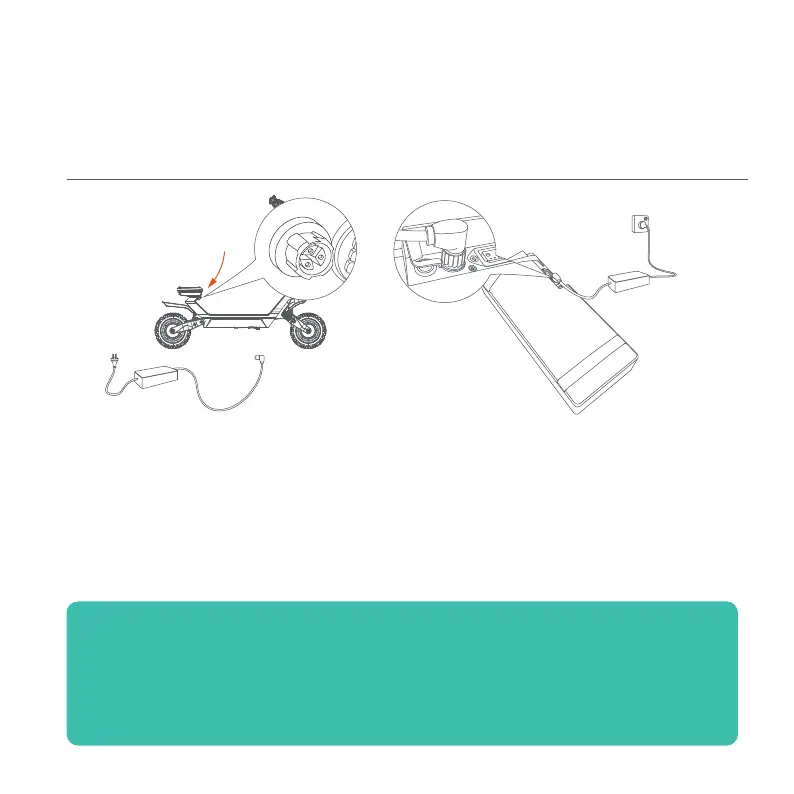 5. Charging ways: The E-scooter supports two charging ways:Charging direclty or taking out the battery to charge.