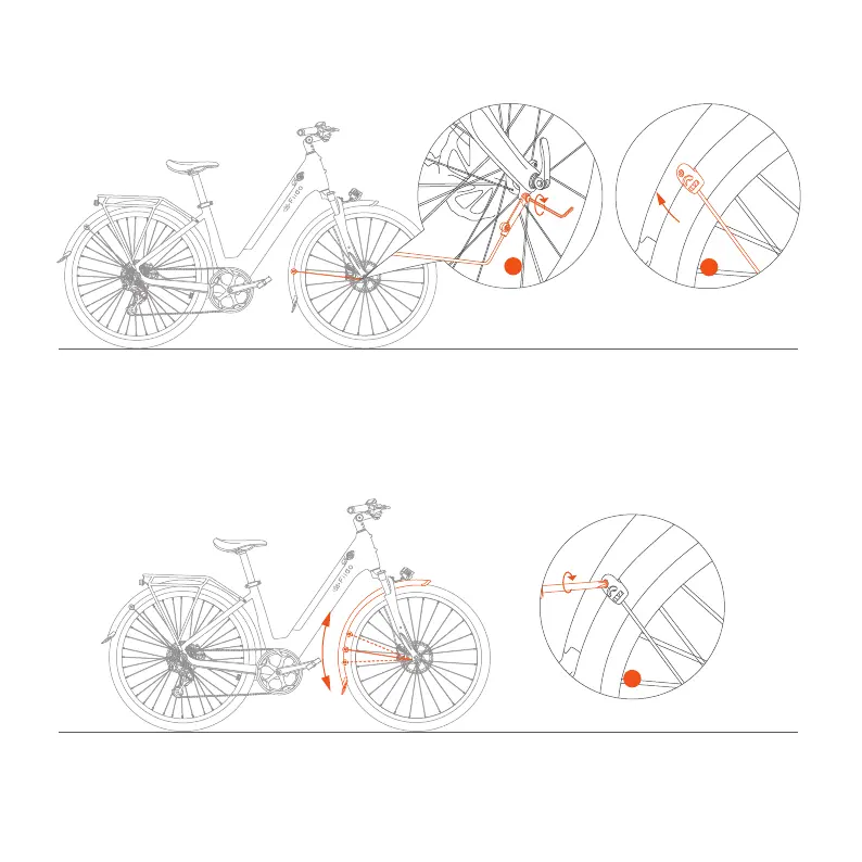 ⑤ Adjust the angle of the fender stand position to keep the fender at a certain distance from the tire, then use the
