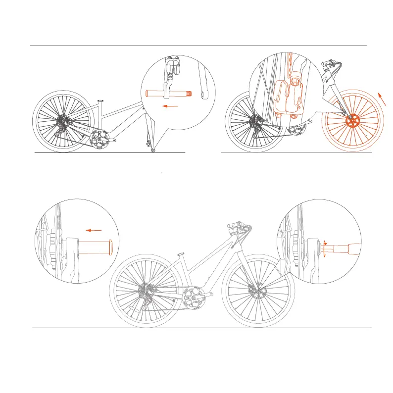 ③ Put the shaft through the front wheel and tighten it clockwise with a three-prong wrench to complete