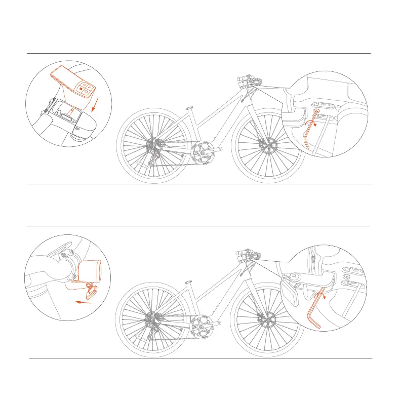 Place the meter in the groove of the handlebar. Use the hexagonal tool to tighten the screw to fastening the meter on
