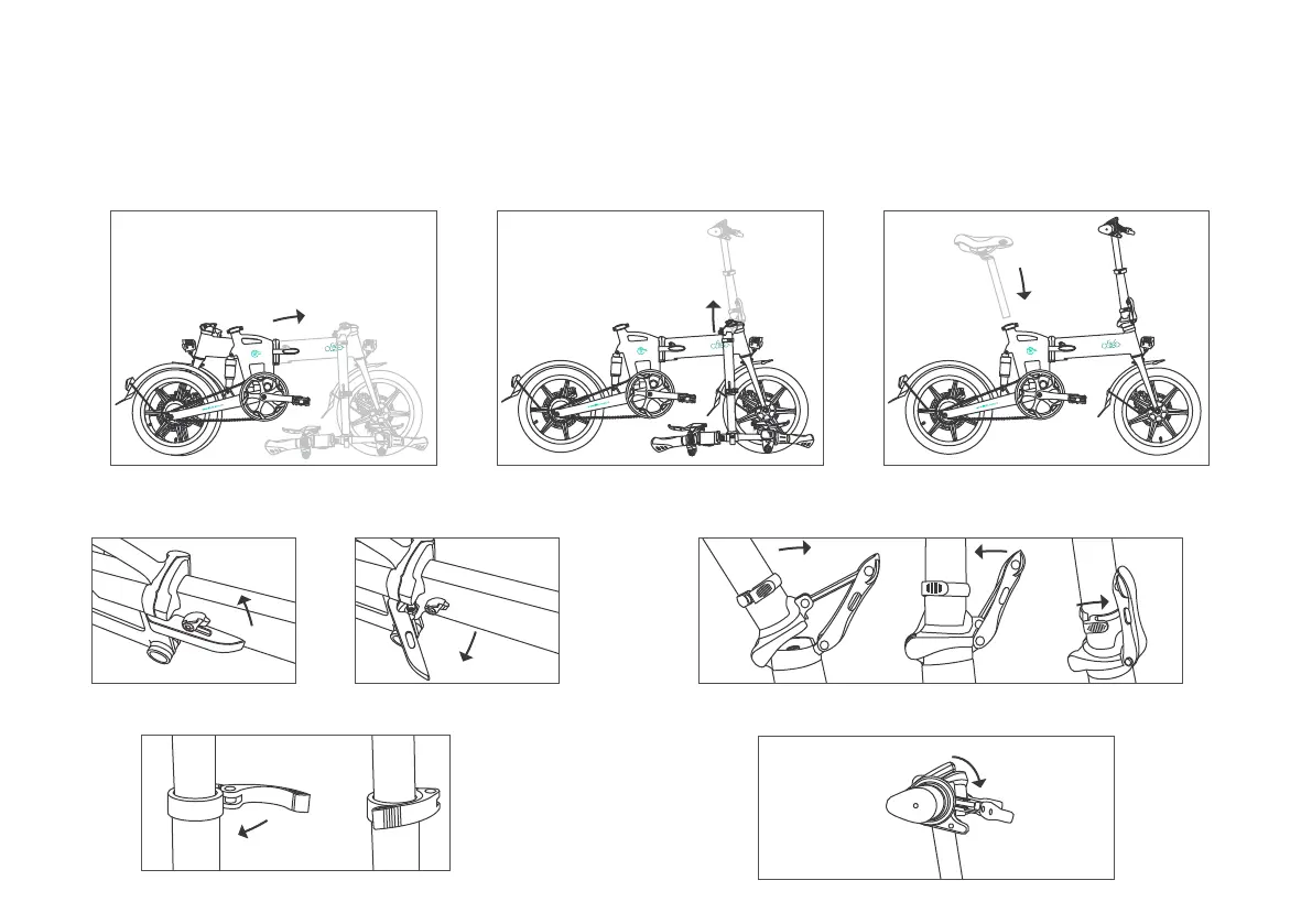 1.1.Spiegare il telaio, bloccare entrambi il maniglio per telaio piegamento e la fibbia di sicurezza per piegamento.