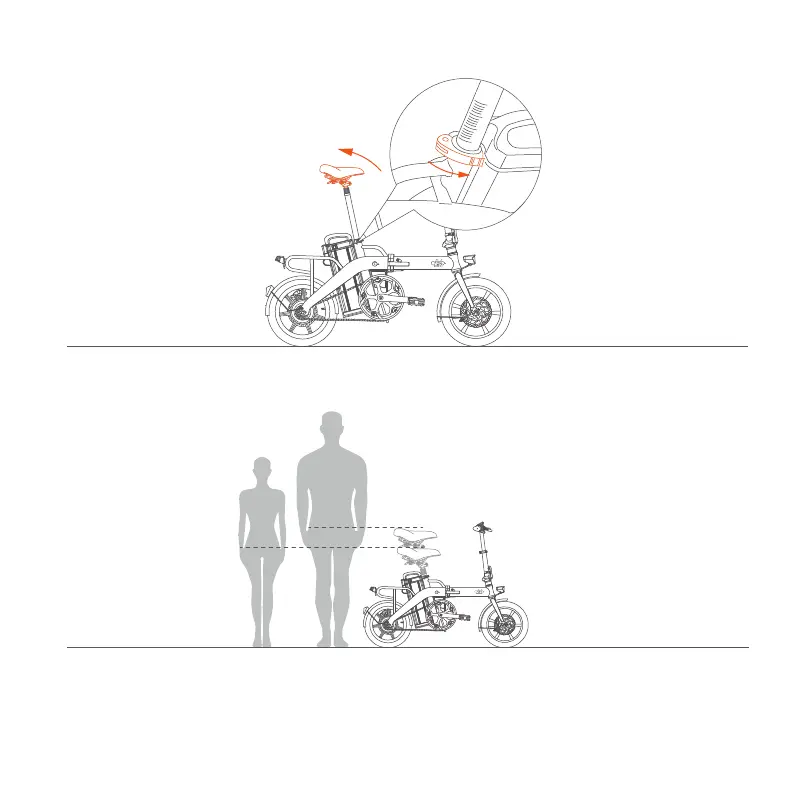 ④ Adjust the seatpost battery to suitable height, the recommended height is when the saddle is level with