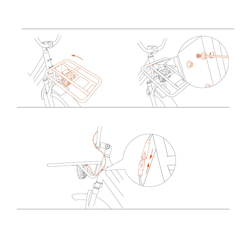 ① Align the four holes of the front basket with the four holes of the bike head, and tighten screws.