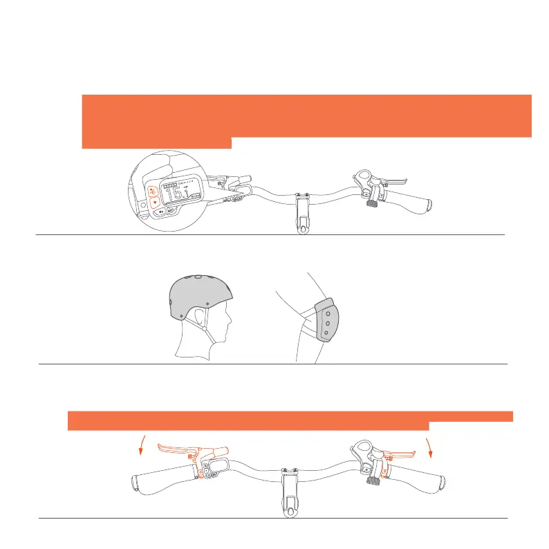 While riding, it’s recommended to use the rear brakefirst, then the front brake to slow down the speed to stop, in