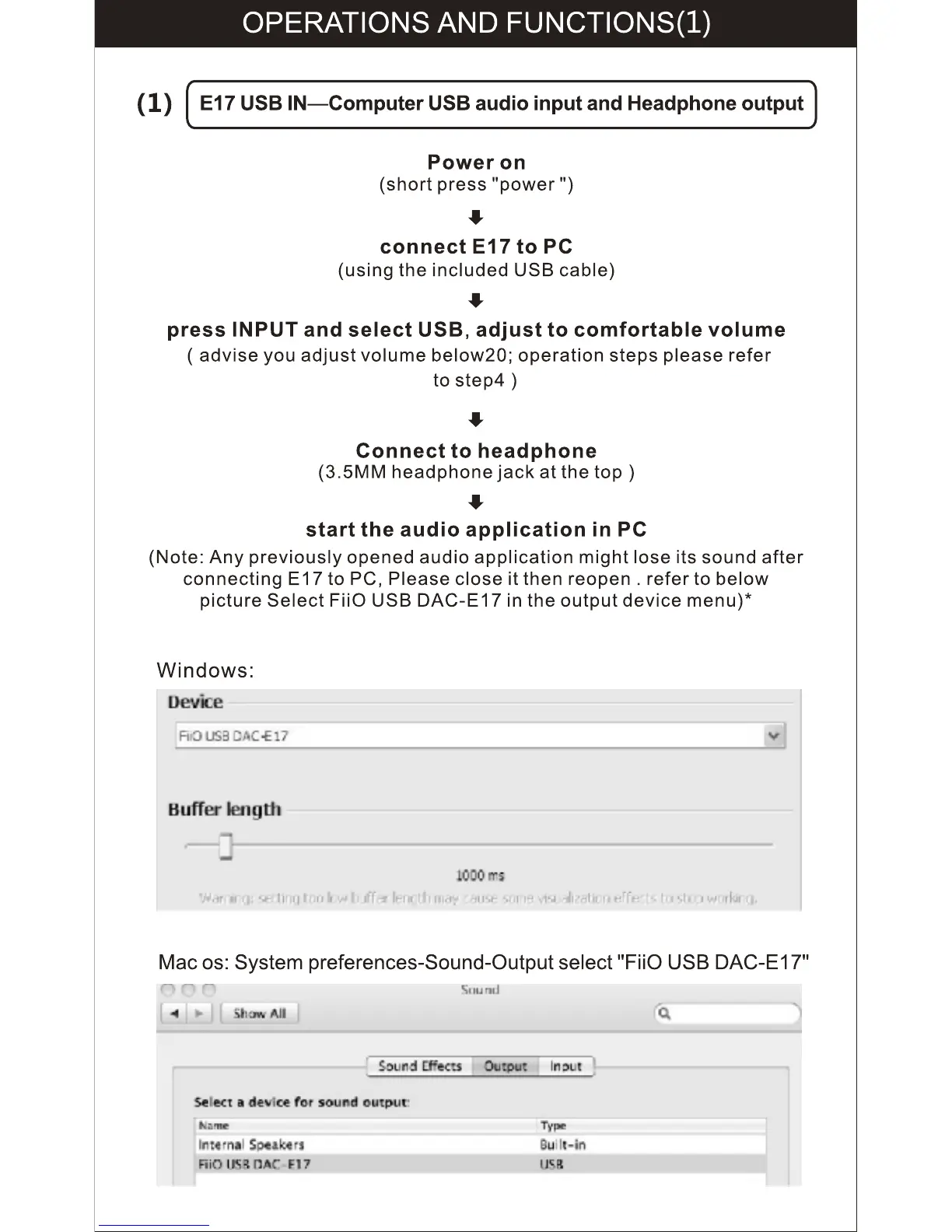 Fiio Alpen E17 - Operating Procedures; USB Audio Input Operation; Device Selection on Computer