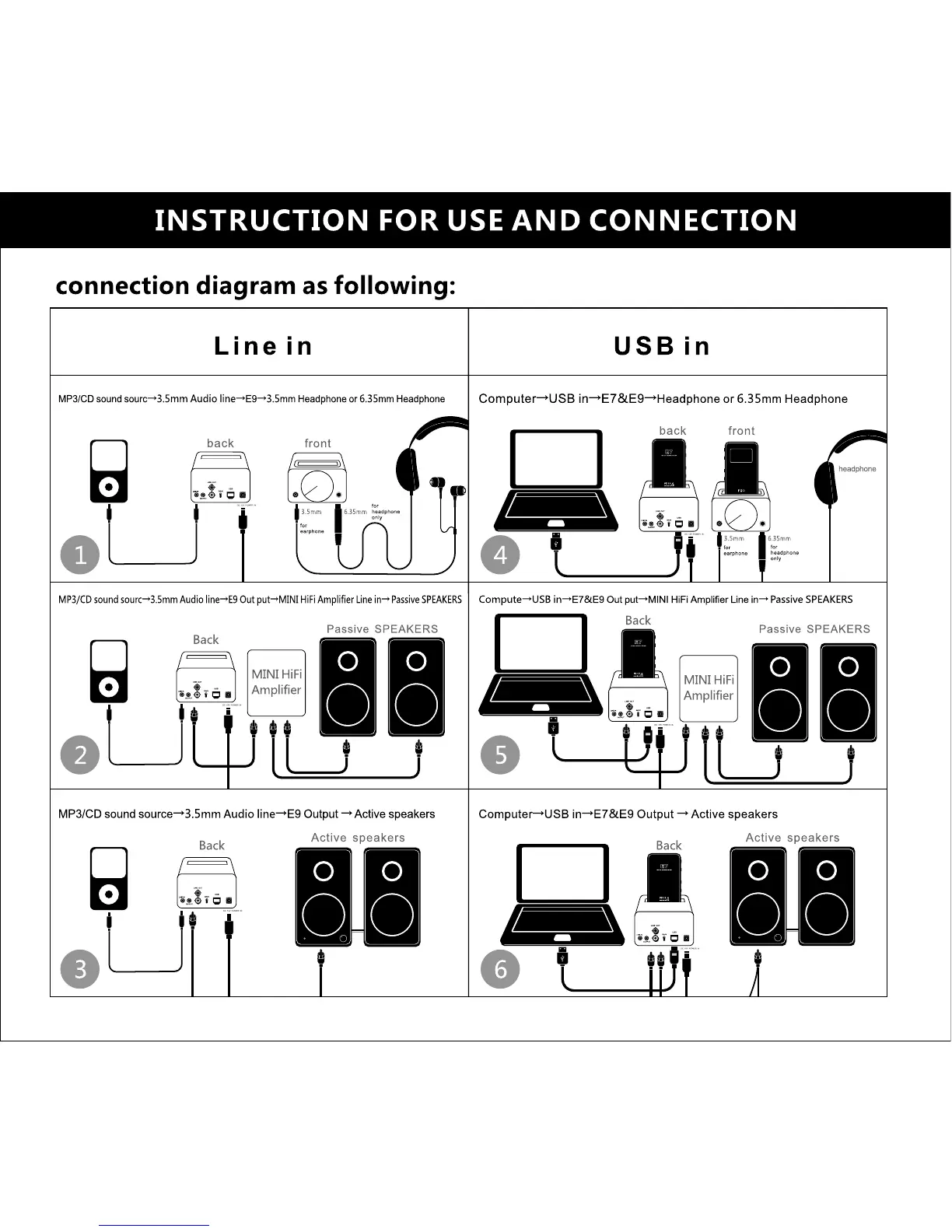 Fiio E9 - FiiO E9 Connection Instructions; Line In Connection Diagrams; USB In Connection Diagrams