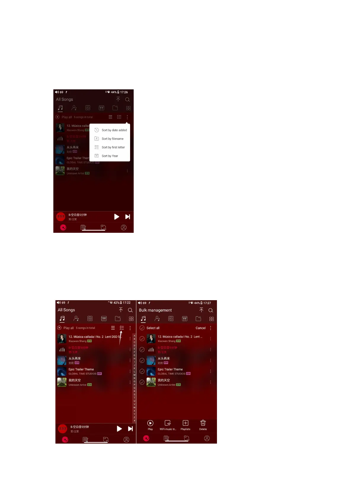 Play music, WiFi music transfer, Add to my favorites, Add to playlists,