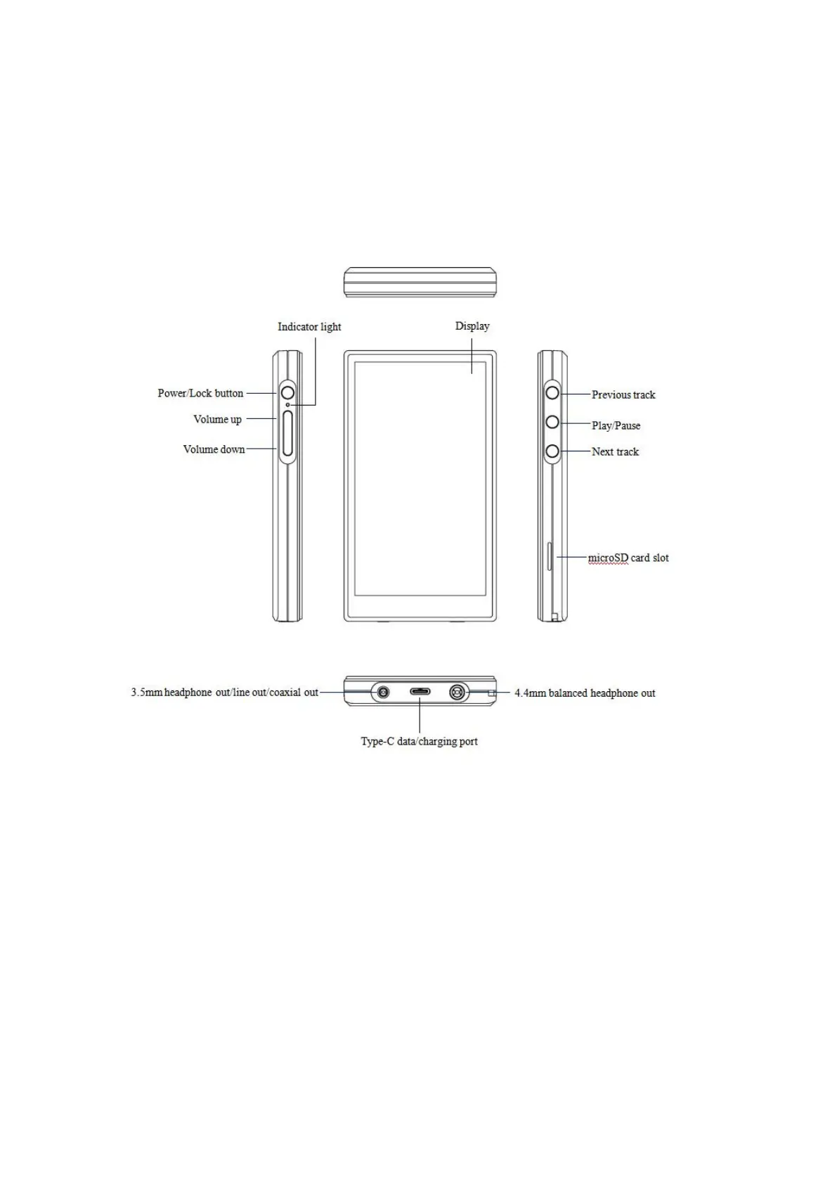 1) Power/Lockscreen: Hold the Power/Lock button to turn on the JM21.
