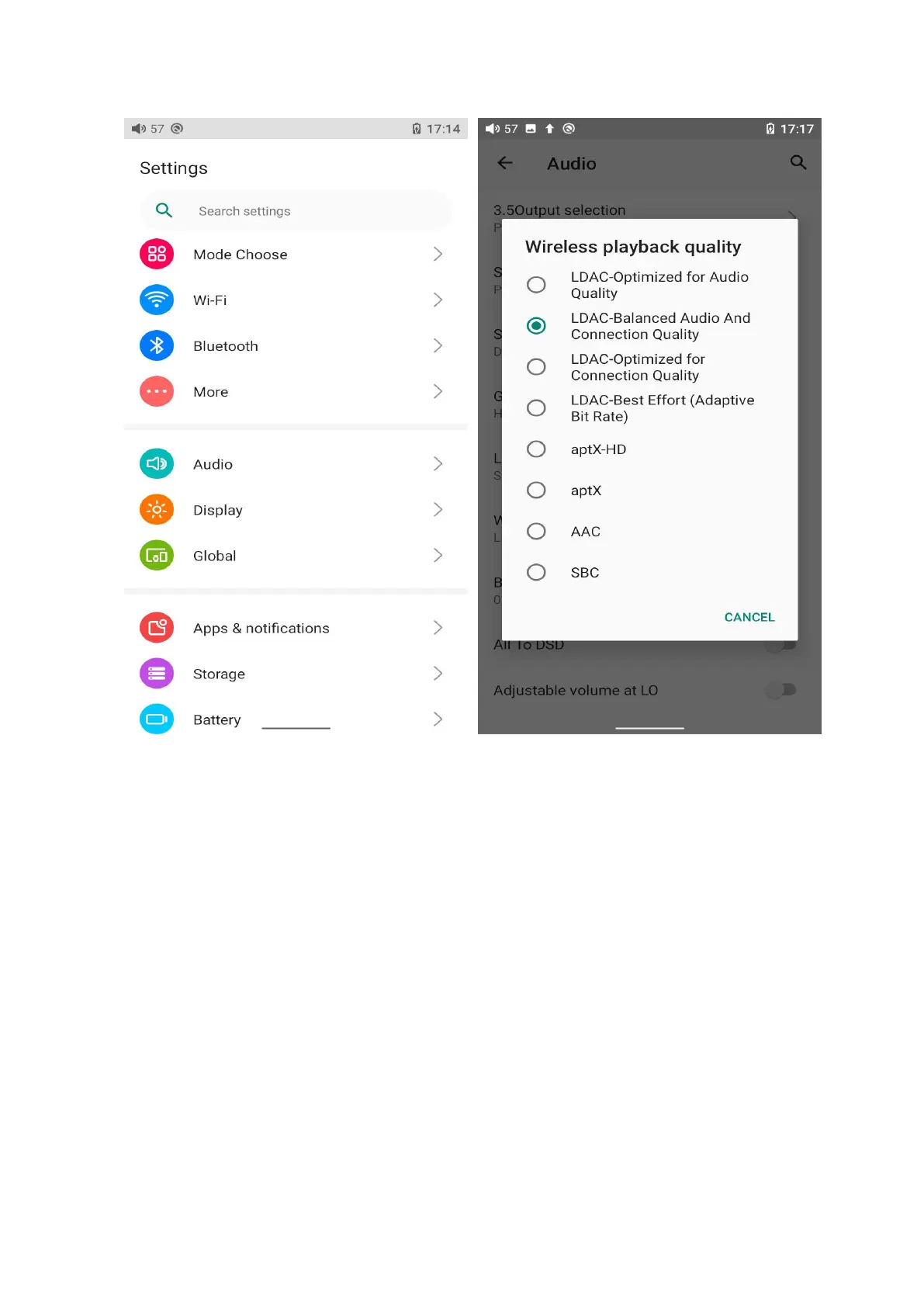 1) If you want to select other codecs when the Bluetooth is connecting, please