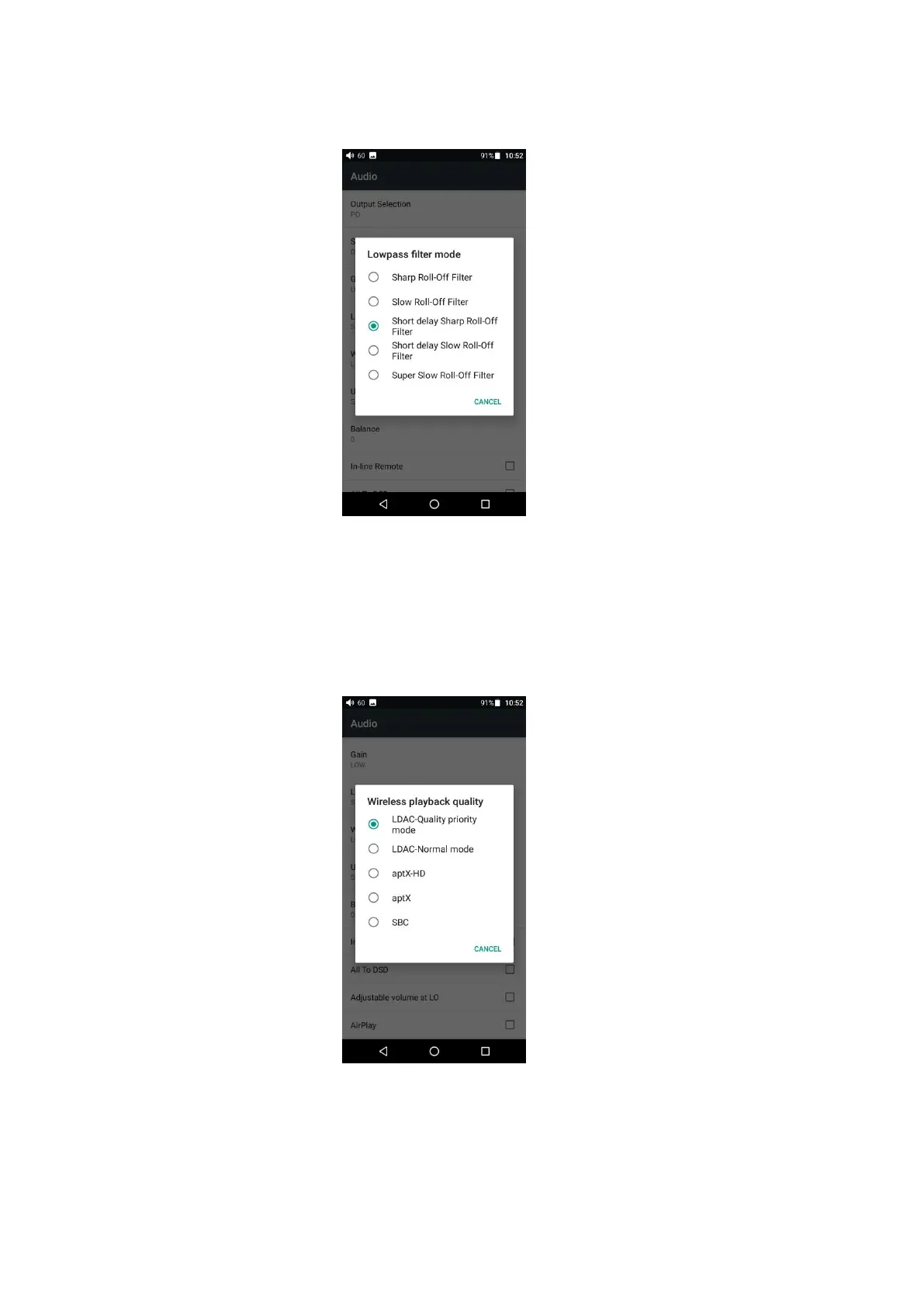 Sharp Roll-Off Filter, Short delay Slow Roll-Off Filter, Super Slow Roll-Off Filter.