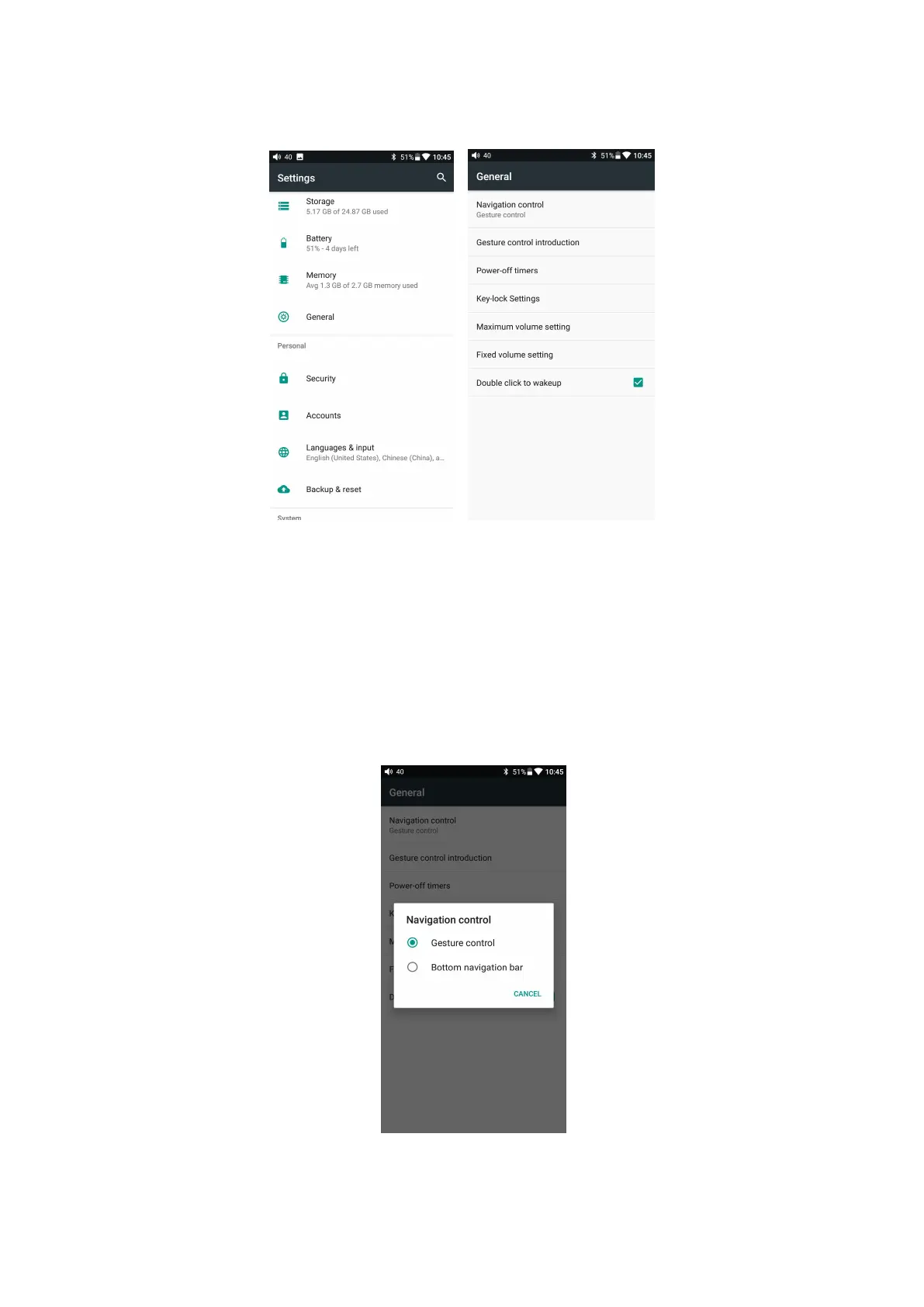 There are two operation modes: “gesture operation” and “virtual key”. Choose the