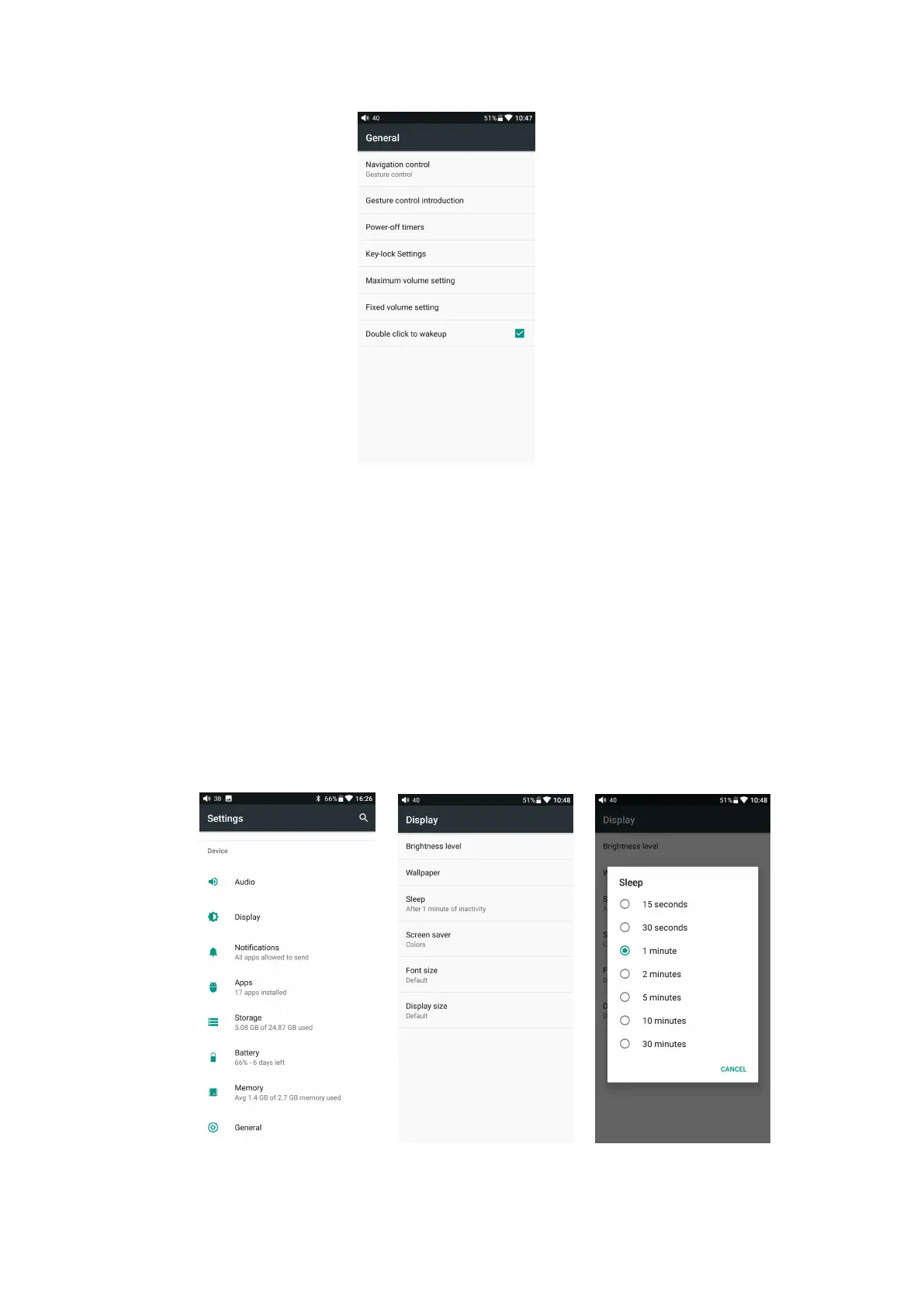 Display includes brightness, wallpaper, hibernation, screen saver, font size, display