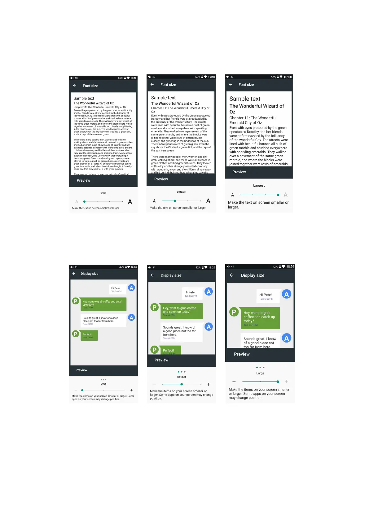 You can choose from three levels of display size, including small, default, and large.