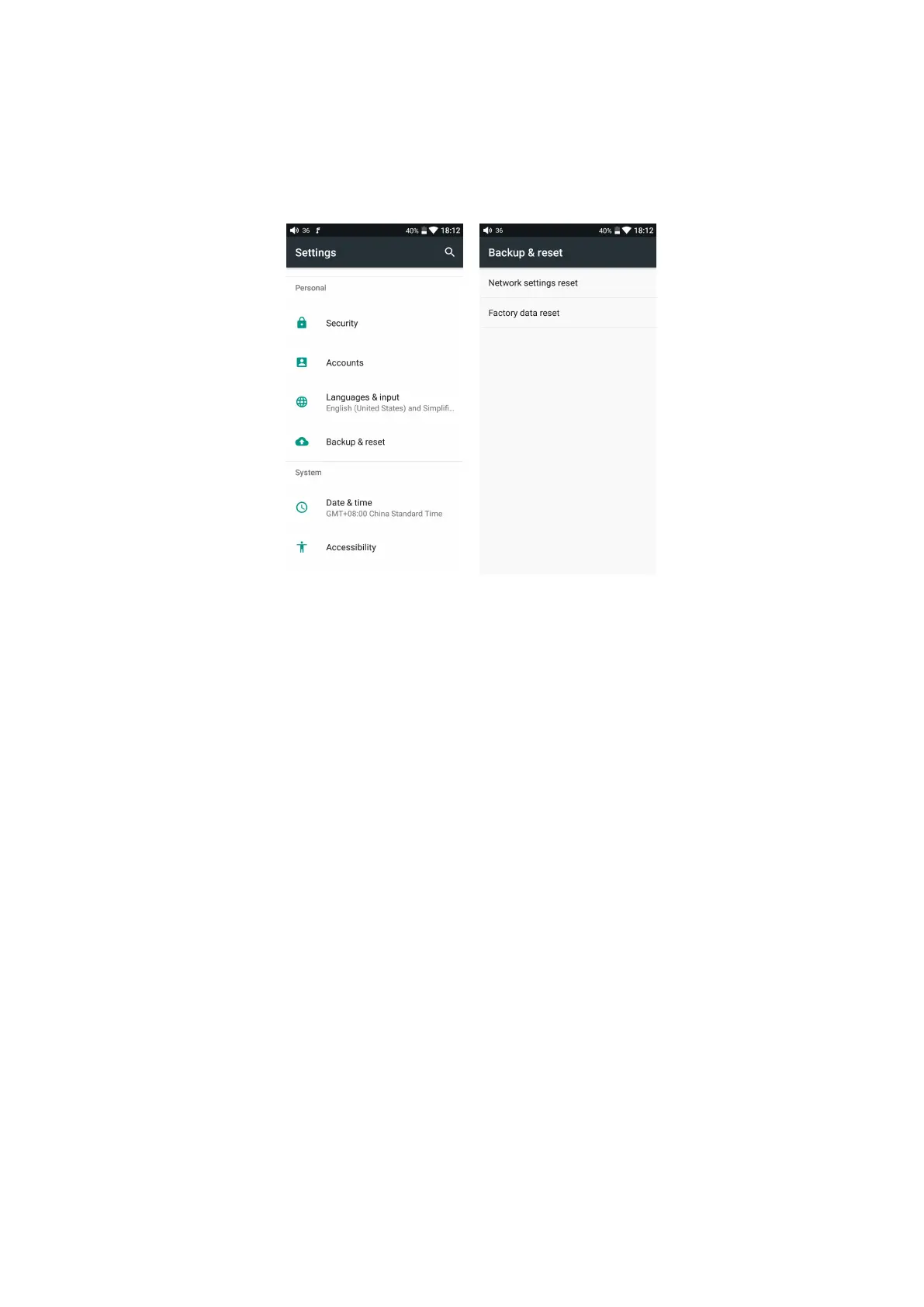 “Factory data reset” will erase all data from your internal storage and restore to the