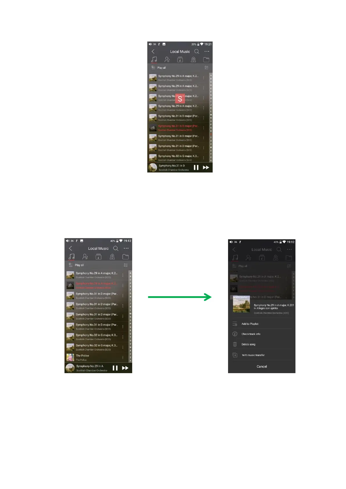 Tap the hidden icon at the upper right corner of “Local music” interface, the