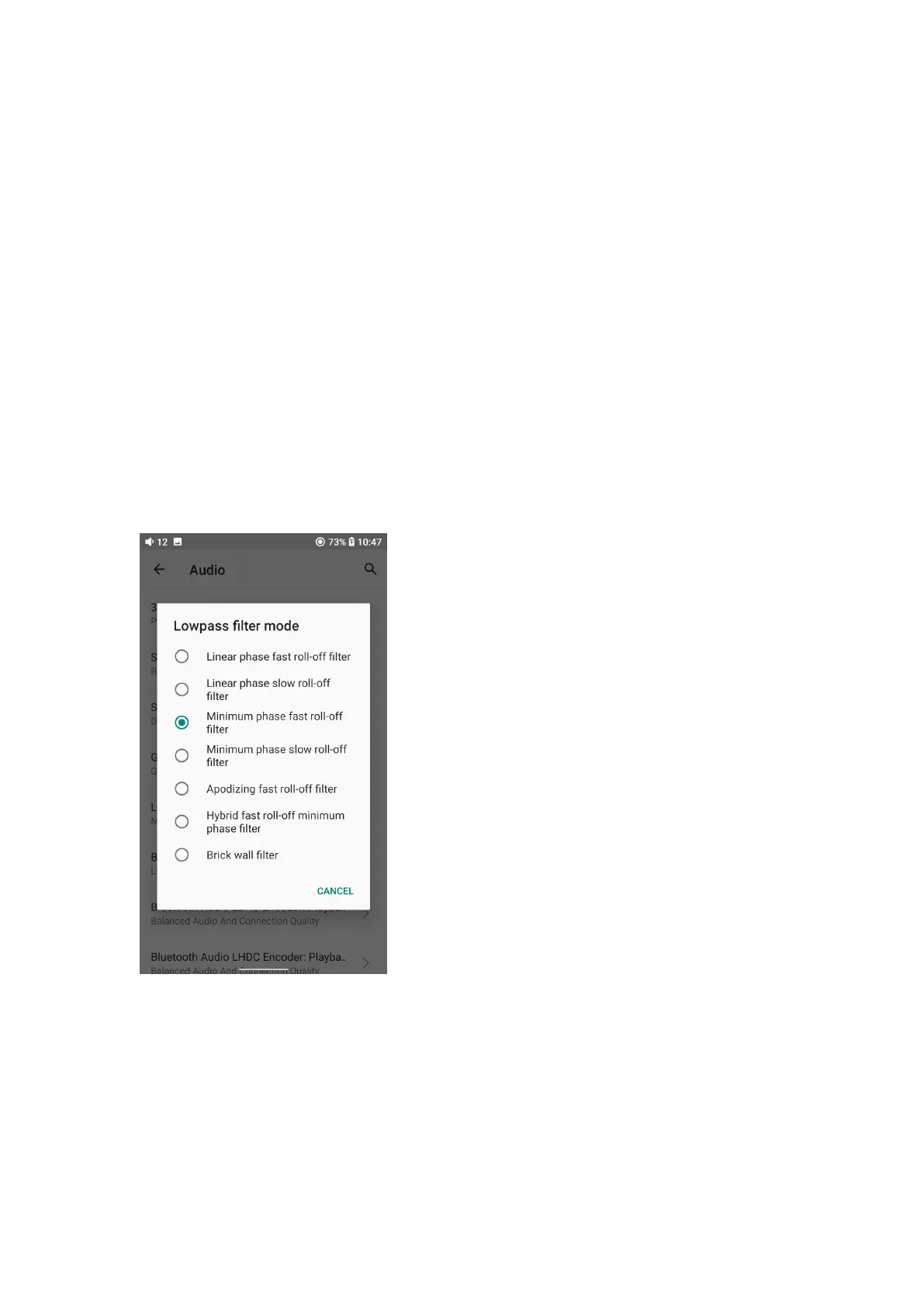 6) hybrid fast roll-off, minimum phase filter: Combination of Linear-
