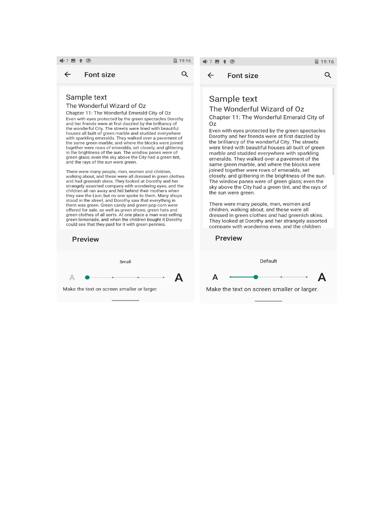 The display size corresponds to the size of the icons and texts displayed