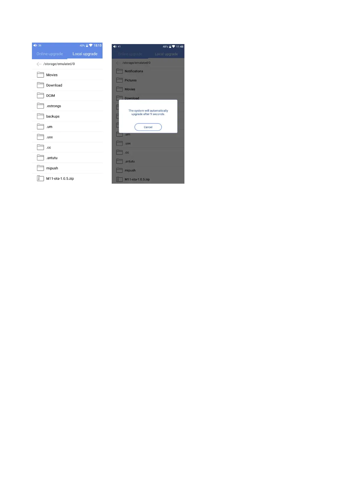 1)Please ensure the battery power is sufficient before upgrading (at least up to 30%);
