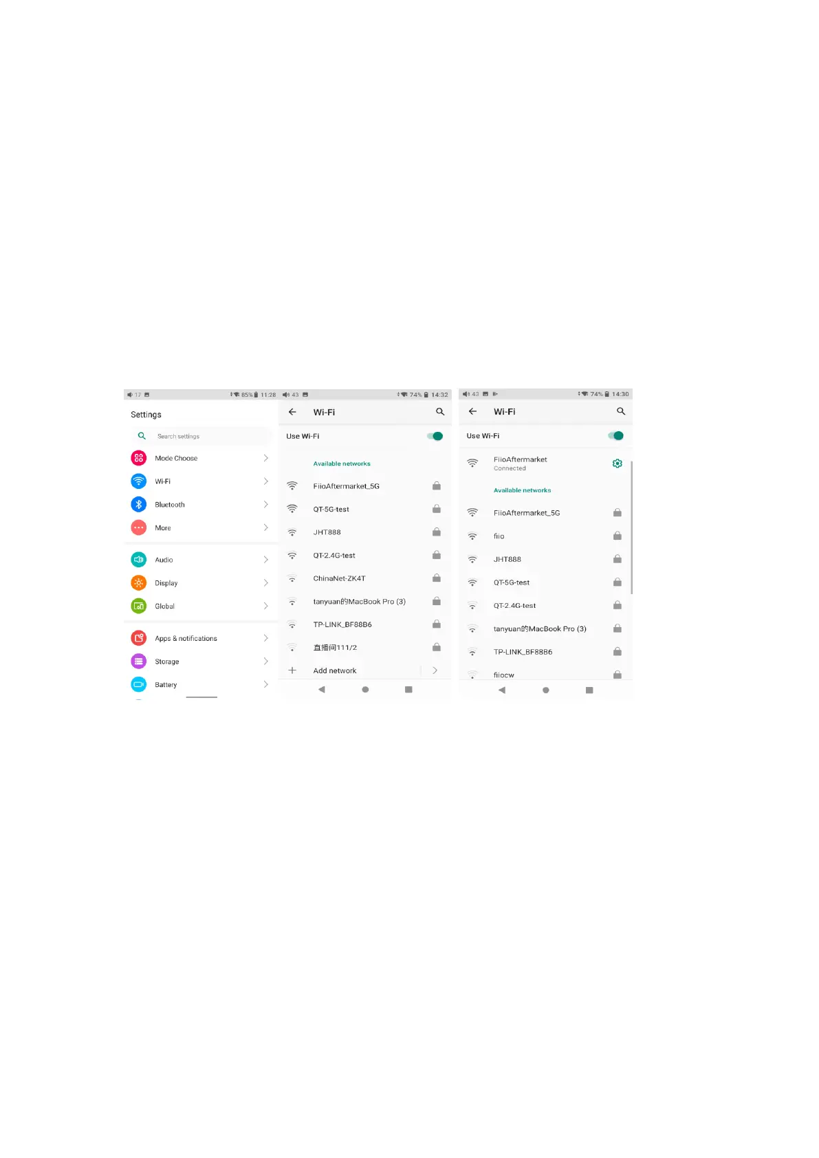 1) In the settings menu of the M15S, tap "WiFi".