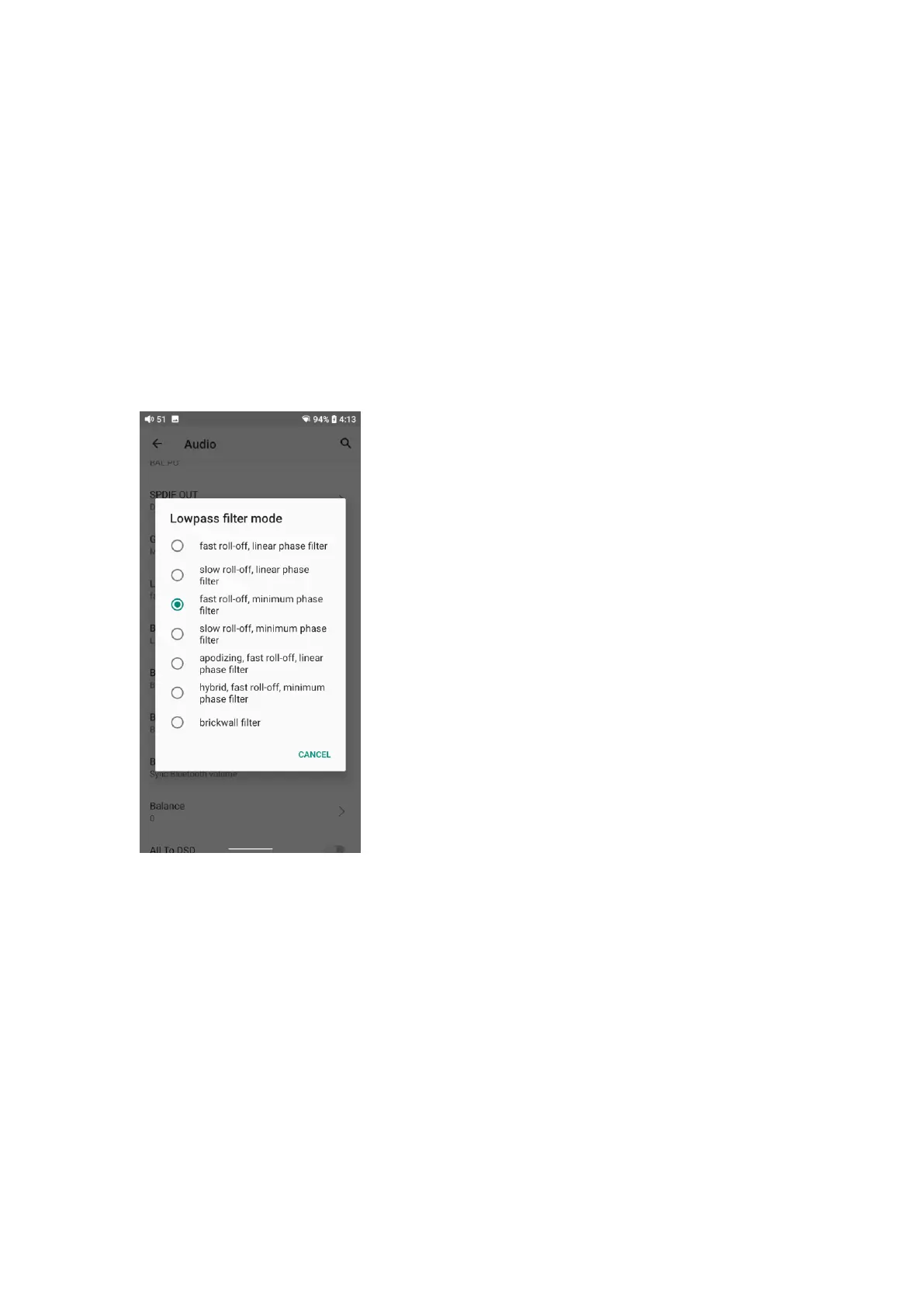 6) hybrid fast roll-off, minimum phase filter: Combination of Linear-phase and
