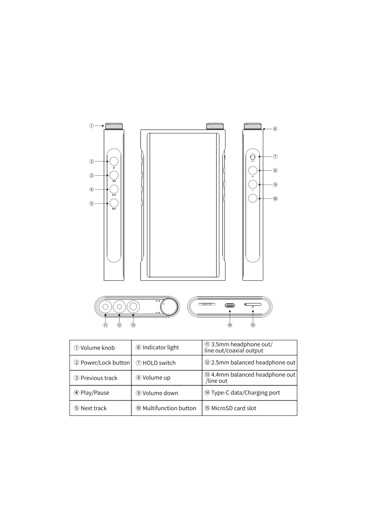 Fiio M15S - Buttons and Ports Overview; Button and Port Functions