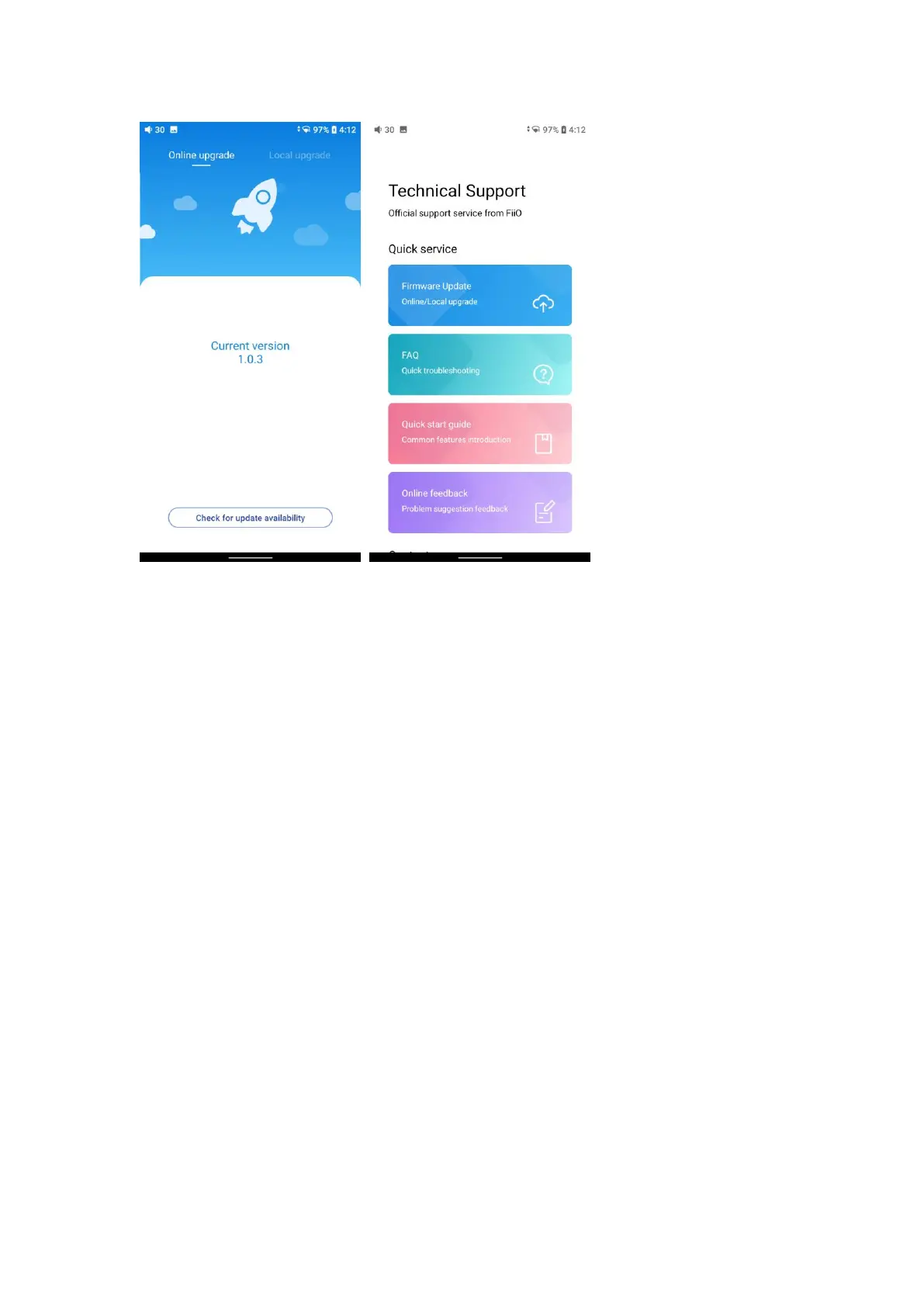 Support->Firmware Upgrade" menu, and tap the "Check for updates" icon to