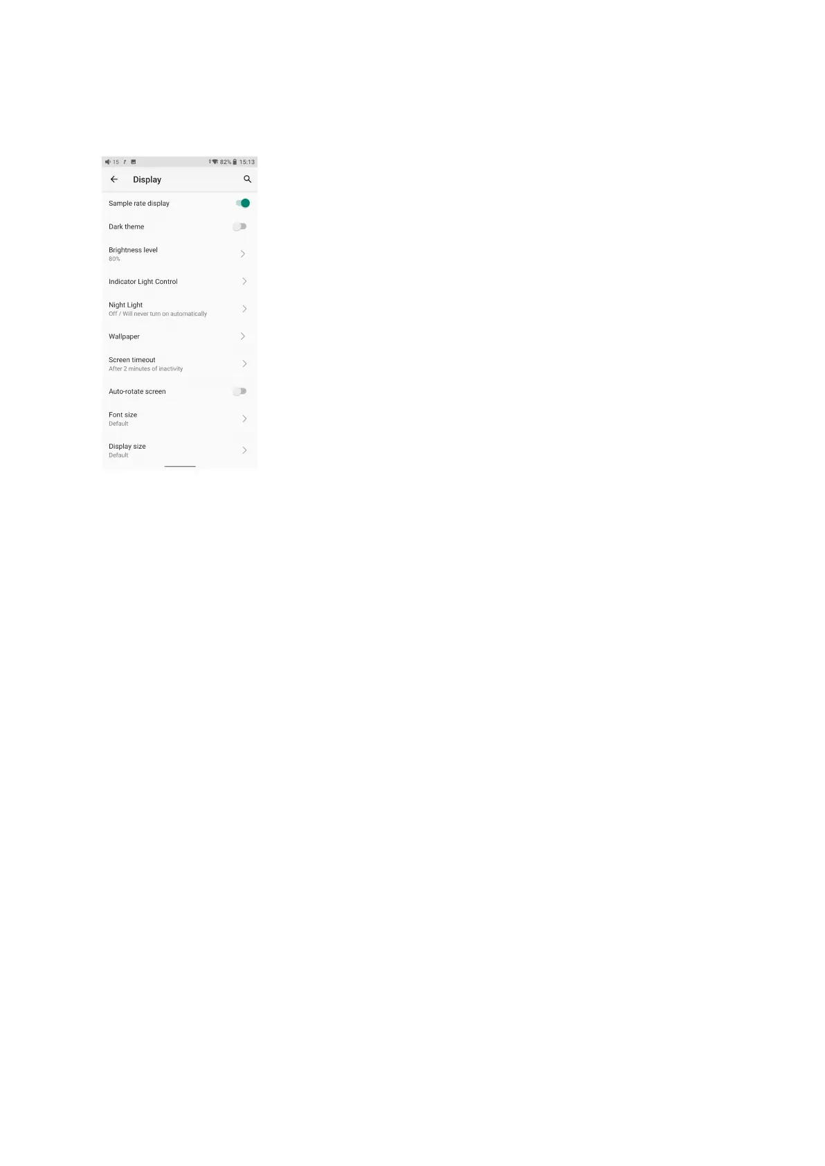 light control, Night light, Wallpaper, Screen timeout, Auto-rotate screen, Font size, Display