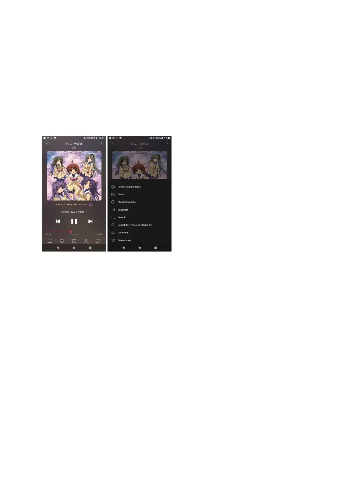 Switch page: by tapping the middle of the album cover, it will switch pages between the